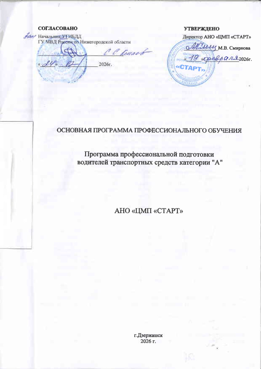 Программа профессиональной подготовки водителей транспортных средств категории «А»