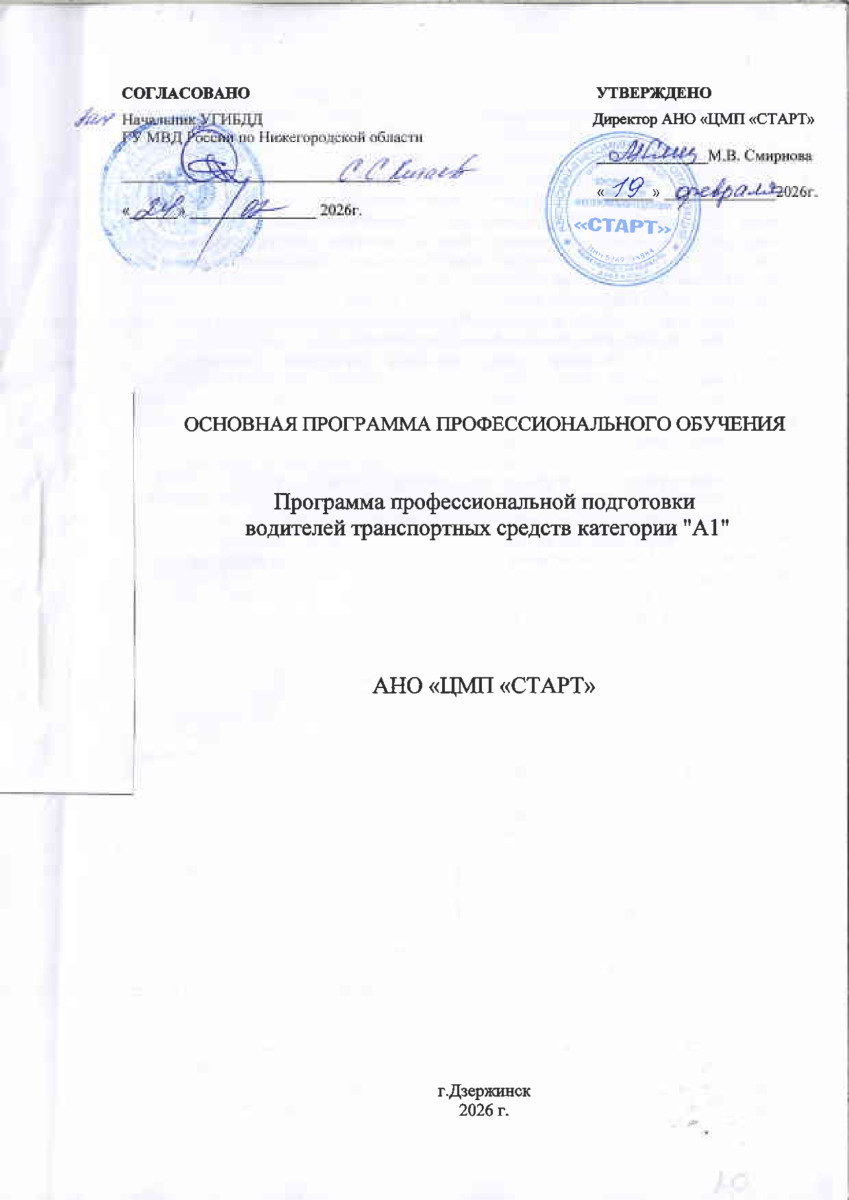 Программа профессиональной подготовки водителей транспортных средств подкатегории «А1»