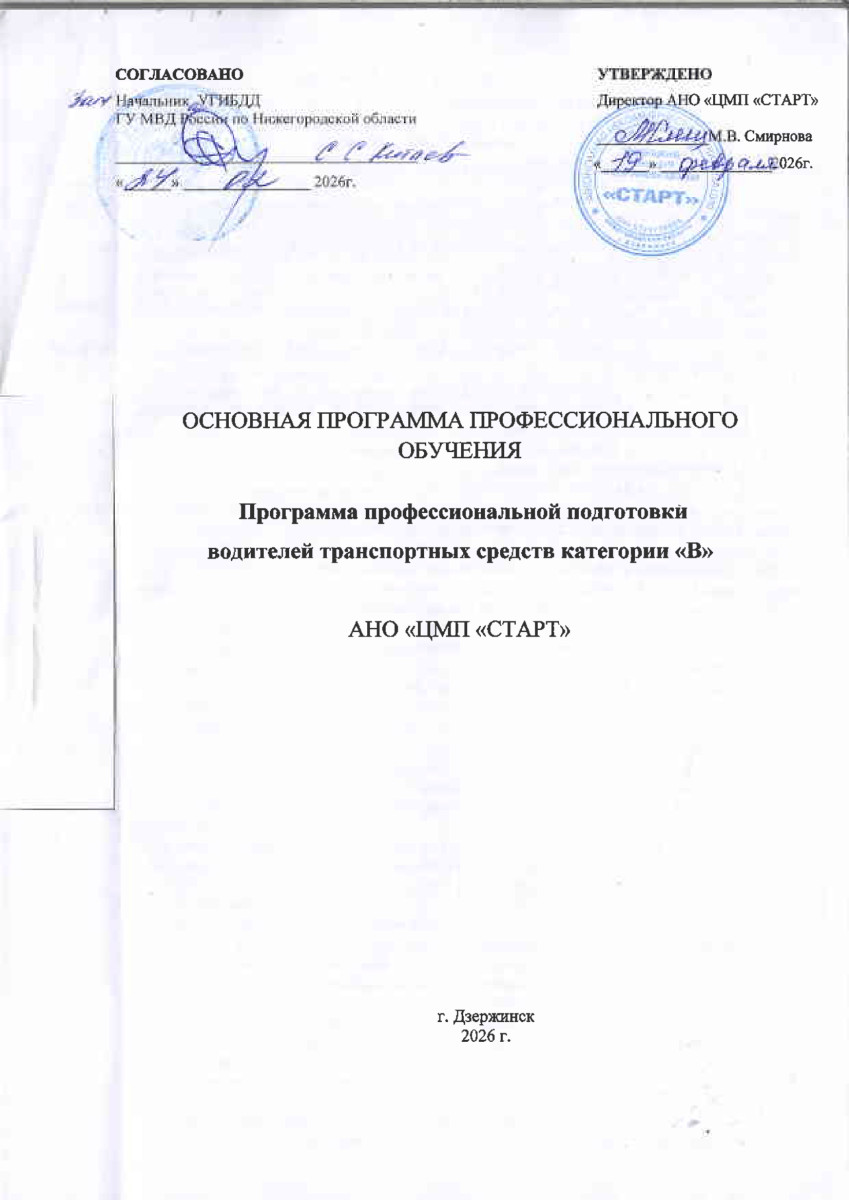 Программа профессиональной подготовки водителей транспортных средств категории «В»