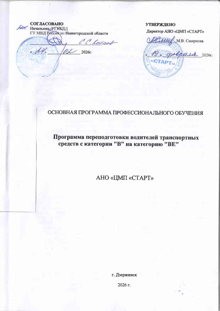 Программа профессиональной подготовки водителей транспортных средств категории «ВE»