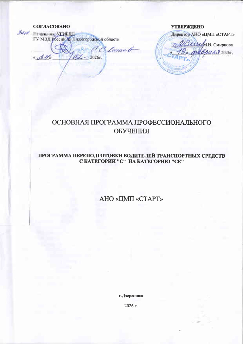 Программа профессиональной подготовки водителей транспортных средств категории «СE»