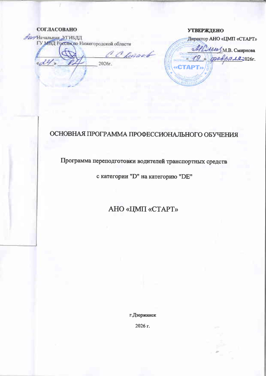 Программа профессиональной подготовки водителей транспортных средств категории «DE»